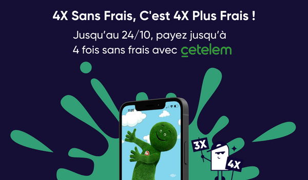 Jusqu'au lundi 24/10 à minuit, CertiDeal vous offre le paiement en 3X et en 4X Sans Frais sur les paiements effectués avec son partenaire Cetelem*. Profitez-en pour étaler votre paiement jusqu'à 4 mensualités, et sans aucun frais !